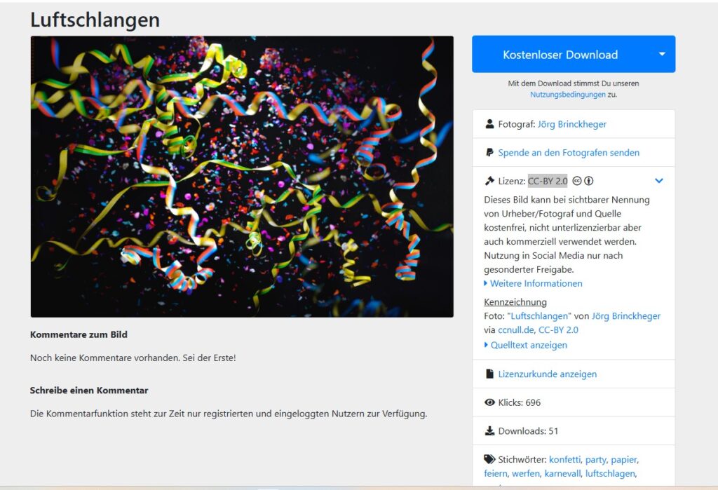 Bild 9: Screenshot von flickr.com – Lizenzdetails zum Bild Luftschlangen von Jörg Brinckheger – nicht kommerziell und unverändert